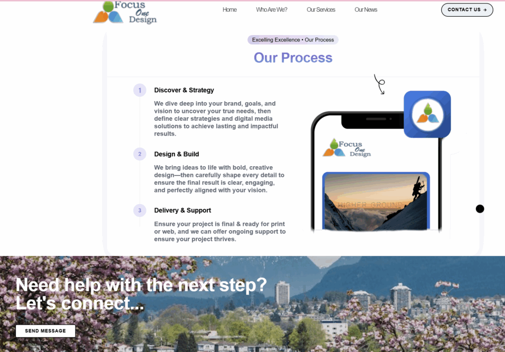 Whether you need a clean, modern website, a fully customized digital solution, or ongoing creative support, Focus One Design brings it all together in one place. With expert insight, innovative tools, and a focused approach, we make building your online presence seamless and effective.